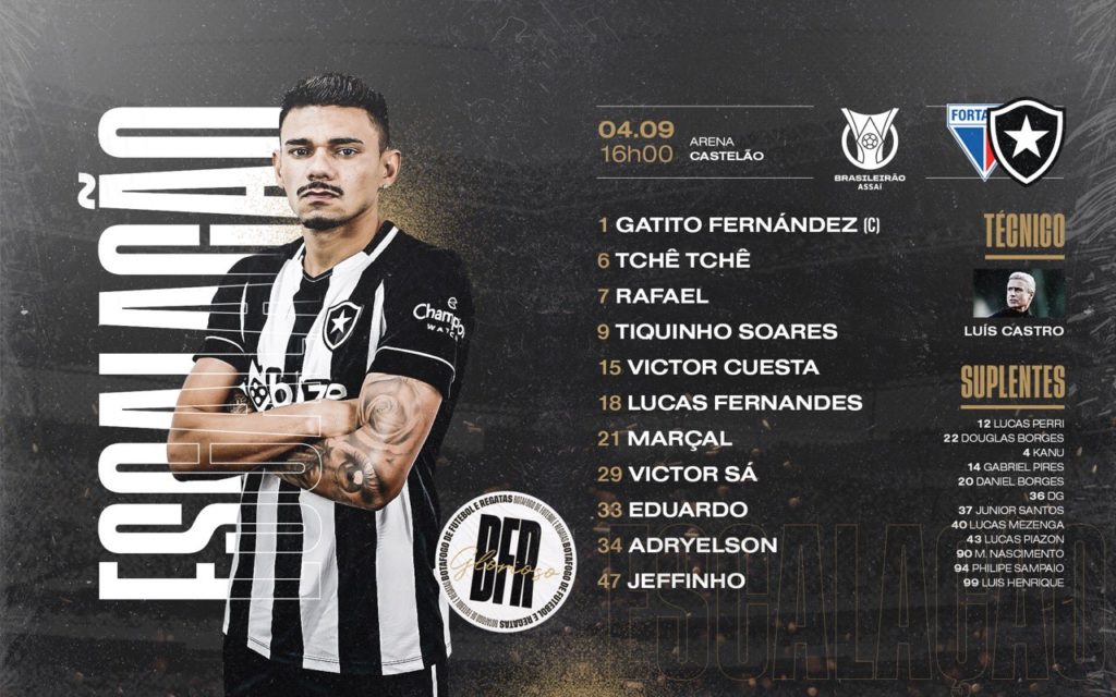 Com Tiquinho Soares, Botafogo está escalado para encarar o Fortaleza no Brasileiro