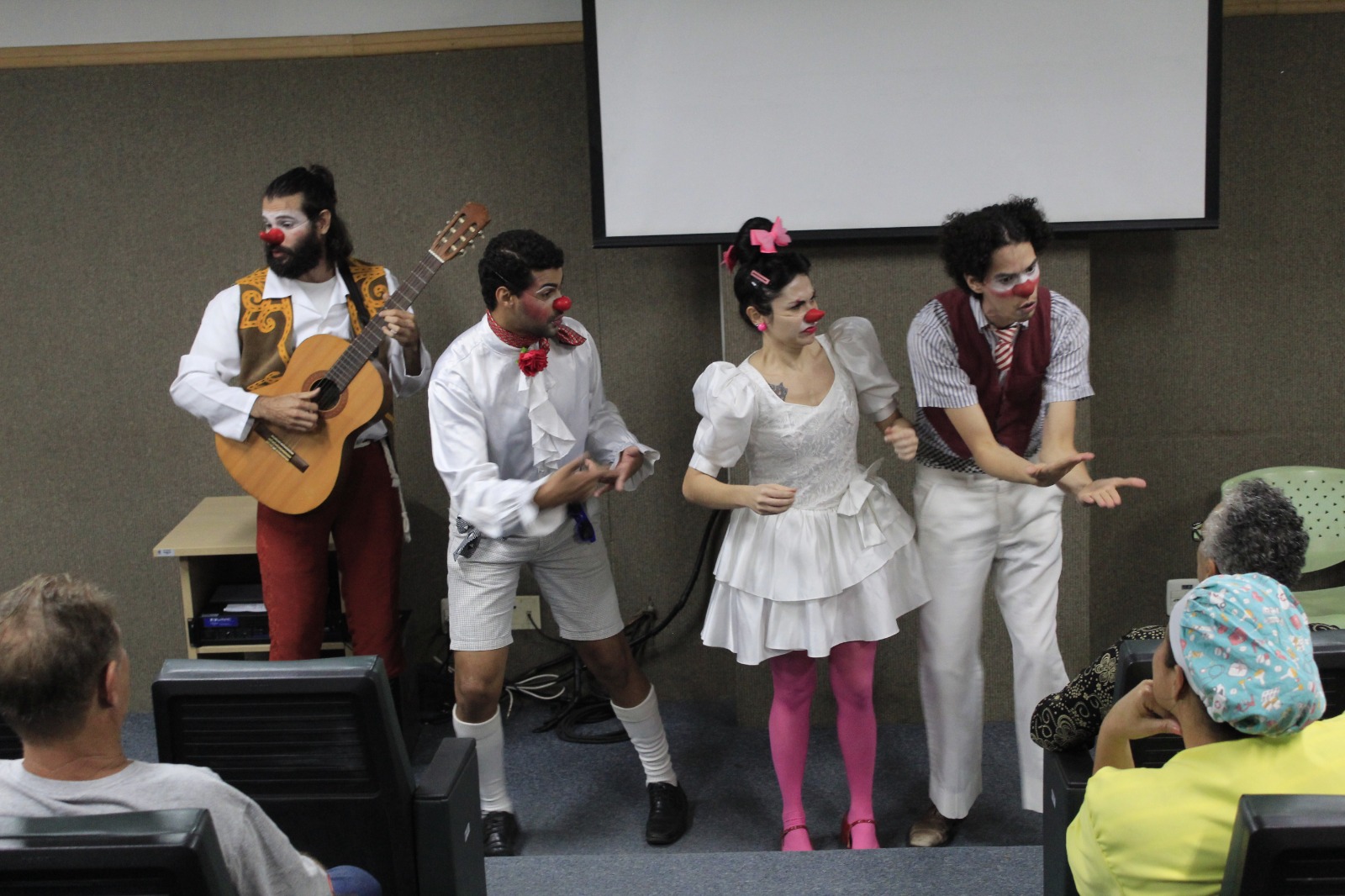 Desenvolve o Programa de Palhaços em 12 hospitais de São Paulo, onde está localizada a matriz da instituição, e Recife. No Rio de Janeiro, com o projeto Plateias Hospitalares desde 2009, mantém uma programação artística permanente e diversa em seis hospitais, com uma programação artística e gratuita que inclui teatro, música, dança, circo e poesia. Tais ações ampliam cada vez mais as relações entre arte e saúde, contribuindo diretamente para o bem-estar de quem está impossibilitado de ter acesso à cultura. Ainda no estado, a organização apresenta, a partir deste mês, a nova trupe de palhaços que atuará, exclusivamente, no Hospital Getúlio Vargas Filho, localizado em Nterói, região metropolitana, em um modelo diverso do já consolidado através do Plateias. Selecionados via edital, o trio de atores passou por um processo de preparação e ambientação que durou três meses.