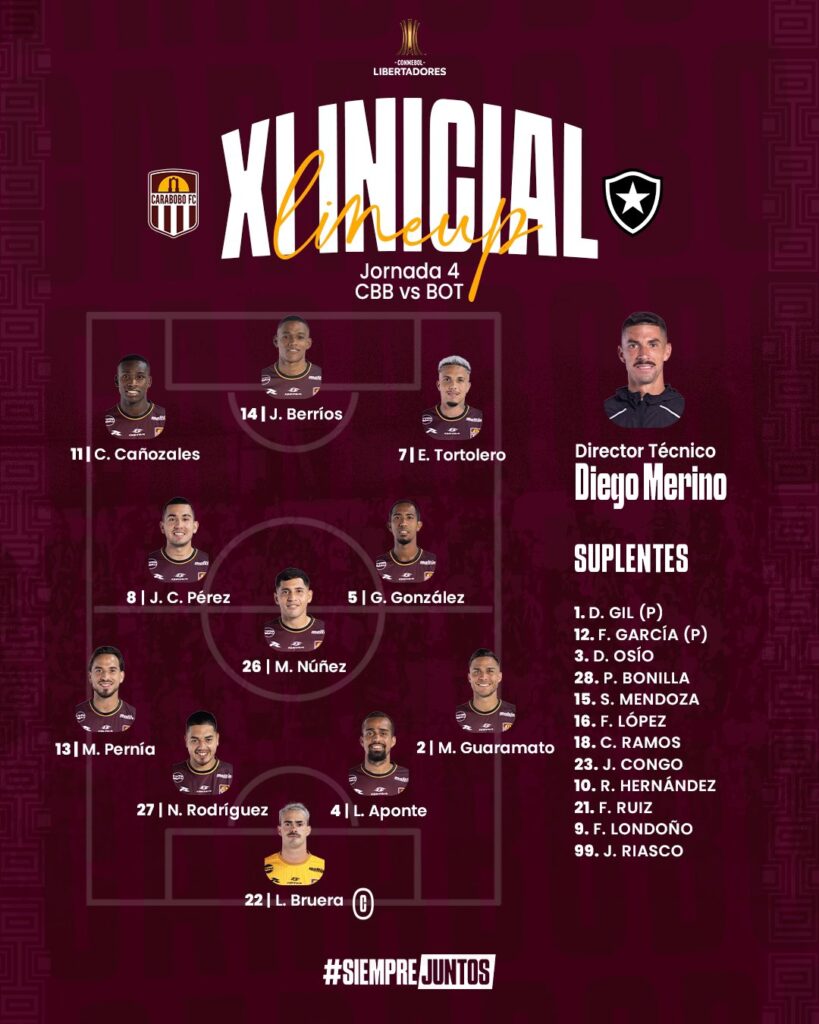 Confira as escalações de Carabobo e Botafogo para o jogo de logo mais