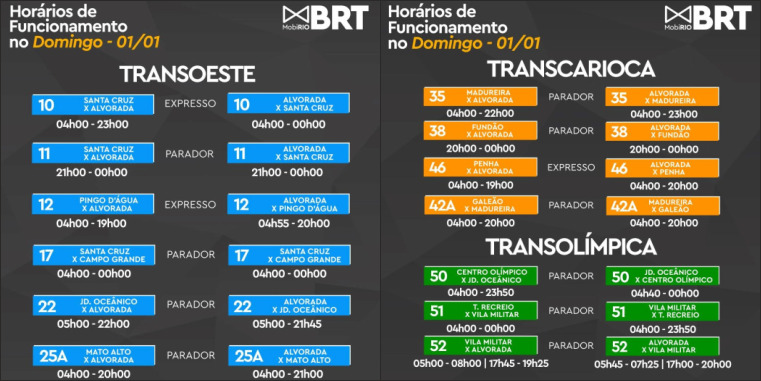 Horários e funcionamento BRT