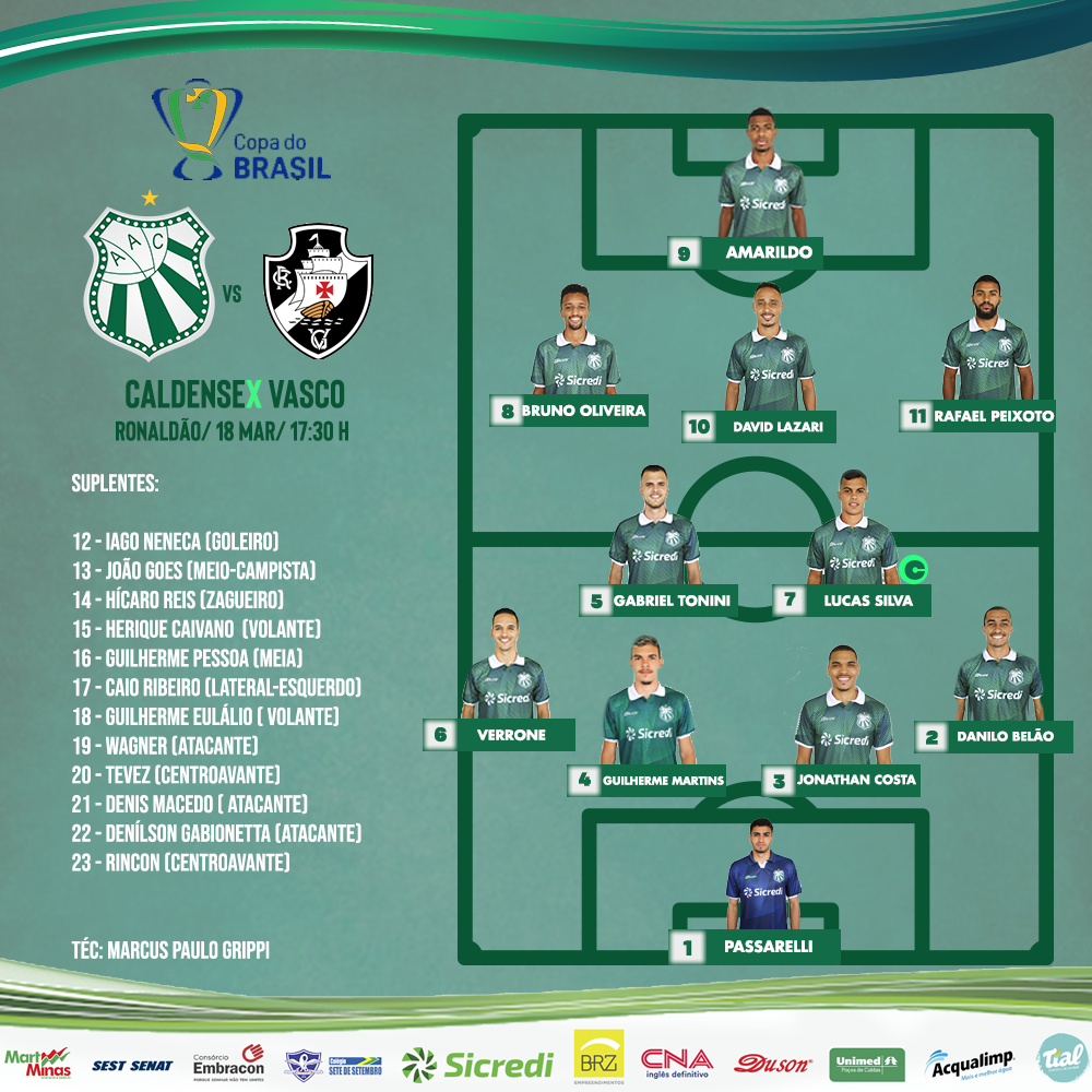 Copa do Brasil: confira as escalações para Caldense x Vasco - Super Rádio Tupi
