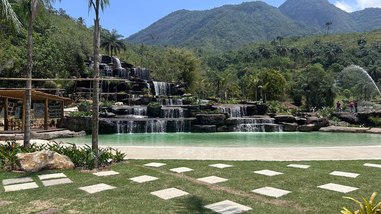 A maior cachoeira da América Latina, construída com materiais recicláveis, foi palco, na manhã desta sexta-feira (17), da segunda edição do Circuito de Educação Ambiental, uma ação que combinou aprendizado, diversão e conscientização ecológica. Com 25 metros de altura, a cachoeira do Eco Resort Castelinho, em Santo Aleixo (Magé), foi erguida a partir de 40 toneladas de resíduos recicláveis coletados na Baía de Guanabara por pescadores do Projeto Águas da Guanabara, incluindo cerca de 3 mil pneus de caminhão, garrafas PET, isopor e outros materiais. Os próprios pescadores estiveram presentes no evento, reforçando o vínculo entre comunidade, sustentabilidade e educação ambiental. A água que abastece a cachoeira vem de um sistema próprio de captação de chuva, garantindo um espetáculo sustentável e educativo para crianças e visitantes.