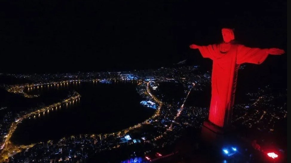 Cristo Redentor é iluminado de vermelho para conscientização contra o Trabalho Infantil