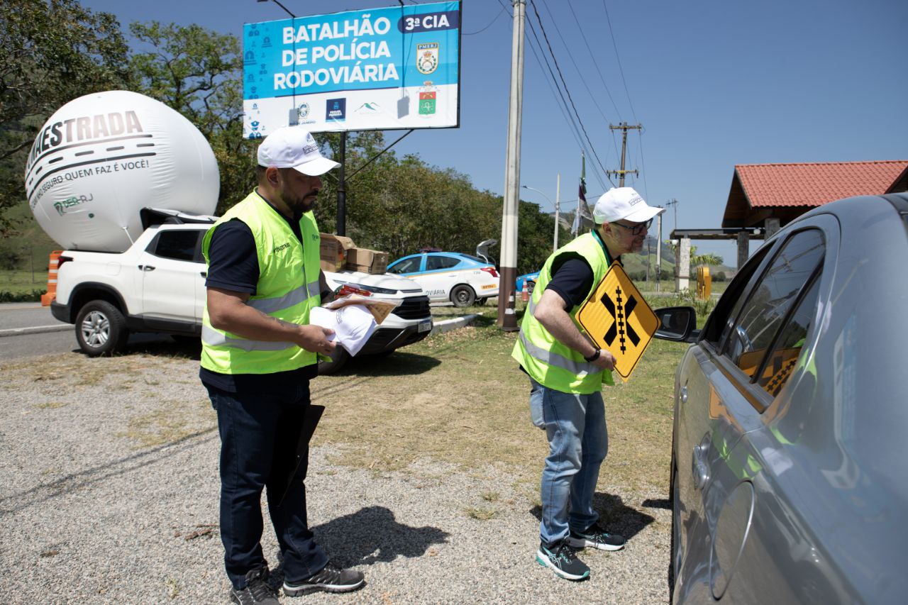 O Departamento de Estradas de Rodagem (DER-RJ) realiza blitz educativa nesta sexta-feira (22), para marcar a Semana Nacional do Trânsito. A ação aconteceu na RJ-125, km 23, na altura do posto do Comando de Policiamento Rodoviário (CPRv), em Miguel Pereira, com o objetivo de promover a conscientização da segurança nas estradas.