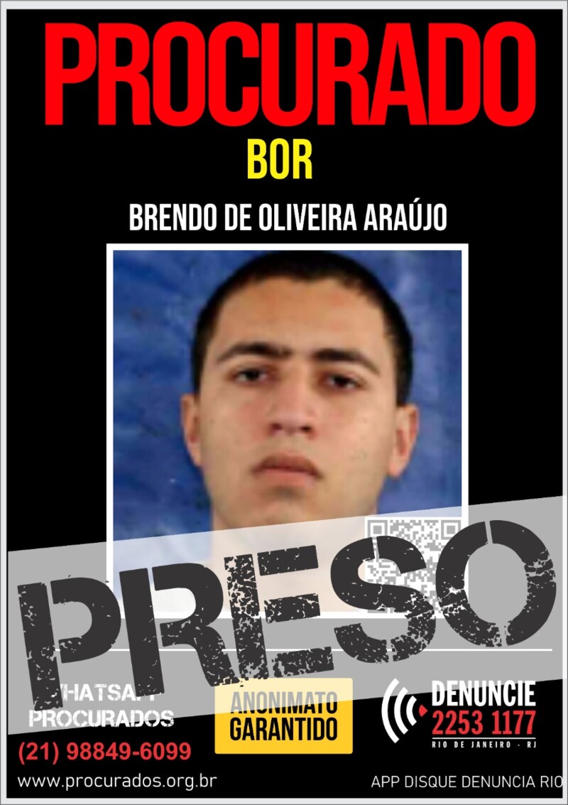 Brendo não apresentou resistência à prisão e foi levado novamente para Penitenciária Industrial Esmeraldino Bandeira, no Complexo de Gericinó. O bandido havia sido beneficiado com Indulto de Natal e não voltou para cadeia. Brendo acabou encaminhado ao presídio, onde cumpre pena pelos crimes de roubo e tentativa de homicídio.