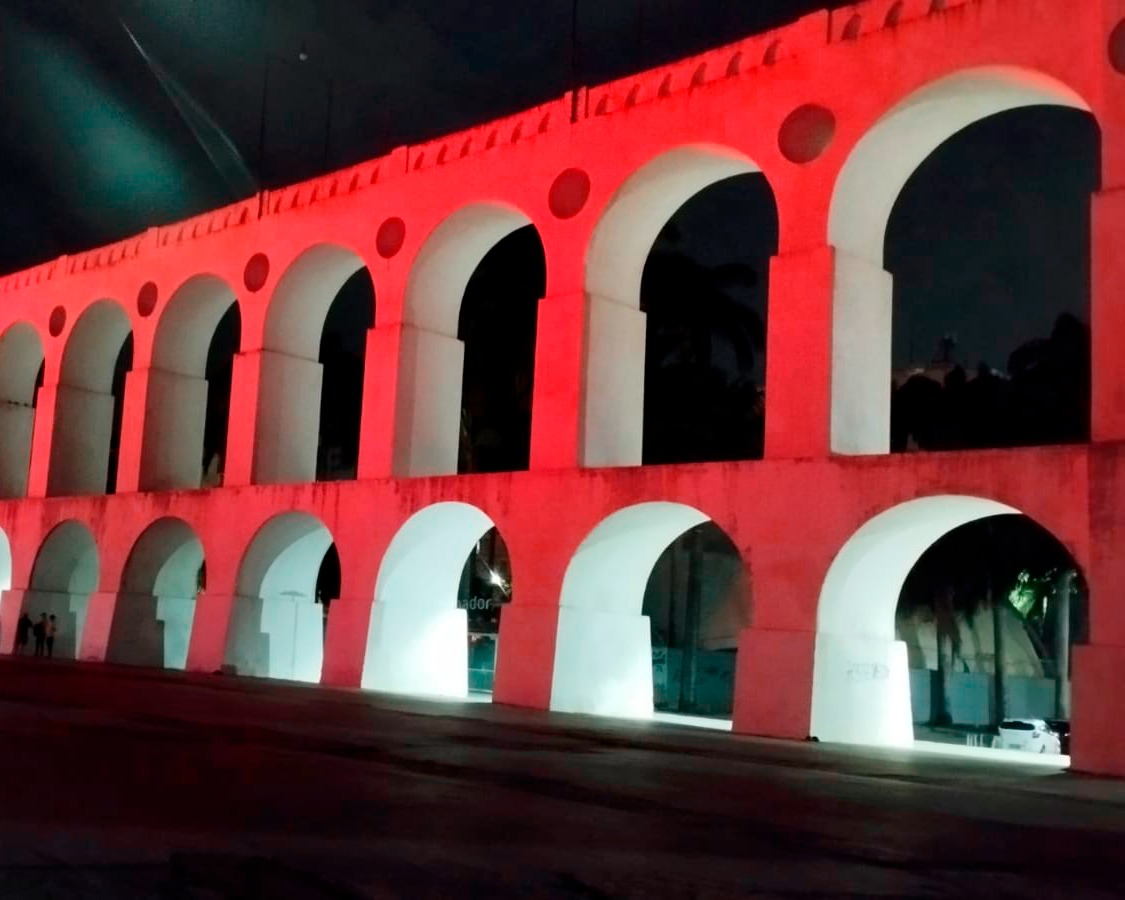 A Rioluz vai iluminar, nesta sexta-feira, os Arcos da Lapa, o Monumento Estácio de Sá e a Passarela da Rocinha nas cores vermelha, em prol da campanha Dezembro Vermelho – Dia Mundial de Luta Contra a Aids.