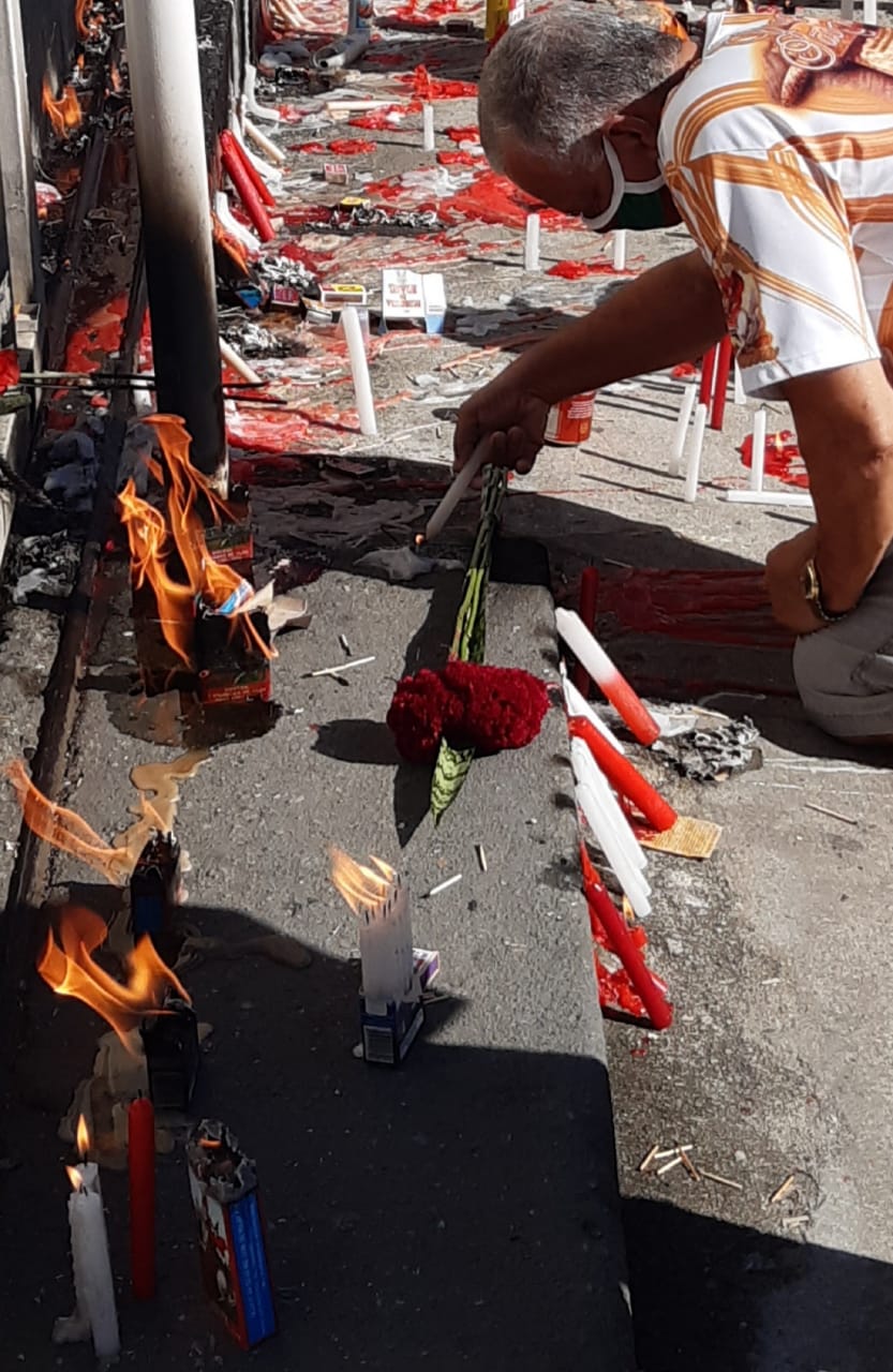 “Eu vim aqui acender essa vela de agradecimento a essa força que eu tenho recebido para homenagear esse meu amigo que nem era só meu amigo, era meu irmão. São Jorge é uma coisa que não dá para explicar. Só com sentimento mesmo de dentro do coração que a gente consegue avançar”, disse ele.