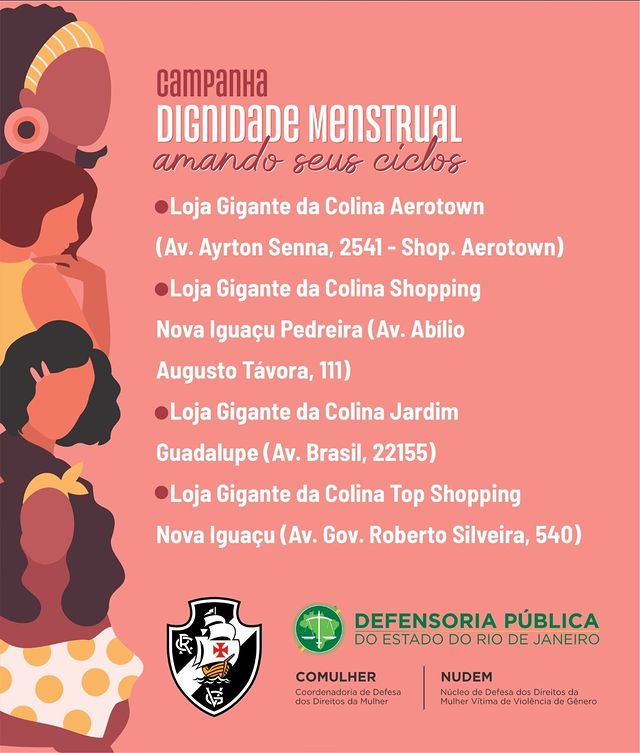 “Falar da luta contra a pobreza menstrual é falar de cidadania, educação e saúde. É falar sobre a mulher da Barreira do Vasco que está presente em todos os jogos e da menina que sonha em um dia ser jogadora de futebol. Conviver com a menstruação com dignidade não pode nem deve ser uma questão de privilégio. Nos juntar com o Vasco é uma honra — seguimos juntos para impactar a vida de meninas, mulheres e menstruantes”, disse Maria Carolina, da ONG Absorvendo Amor, responsável por palestras que serão realizadas nesta campanha.