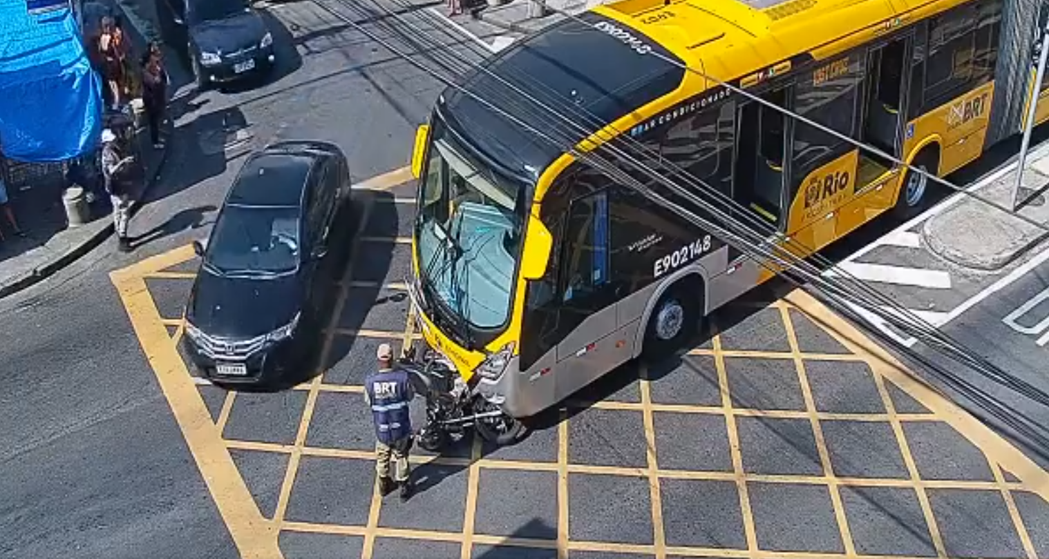 A MOBI-Rio informou que o motociclista causou o acidente ao realizar a conversão indevida no momento em que passava um articulado da linha 10 (Santa Cruz x Alvorada).