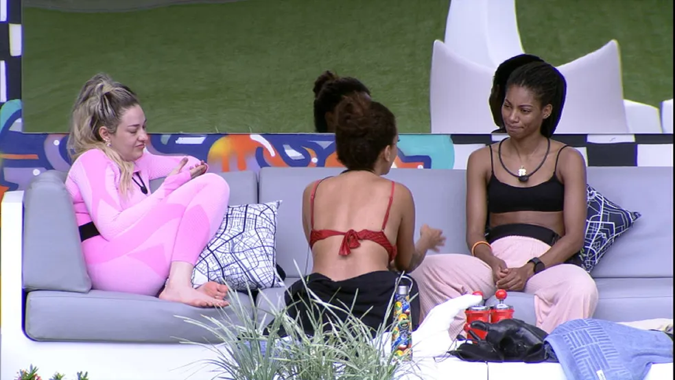 As participantes tiveram uma conversa para tentar resolver os conflitos entre elas, nesta terça-feira (24), após o jogo da discórdia, na área externa da casa mais vigiada do Brasil.