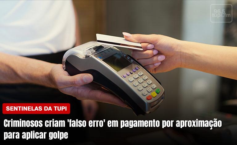 O cliente tenta efetuar uma compra por meio do pagamento por aproximação, que pode ser via cartão, celular ou até pulseira inteligente. Só que, em seguida, a máquina de cartão exibe a seguinte mensagem: “Erro aproximação. Insira o cartão”. Pronto! Este pode ser o primeiro passo para o golpe.