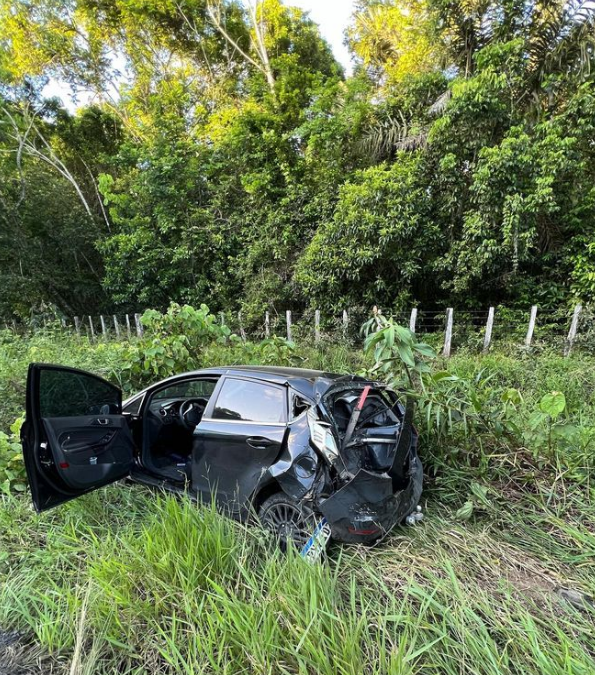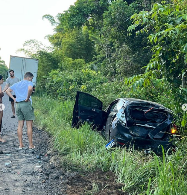Na tarde desta quinta-feira (29), a ex-bbb Gizelly Bicalho compartilhou em sua conta do instagram um registro do estado do seu carro após um acidente na estrada do prado, enquanto estava indo rumo a Itamaraju, na Bahia.