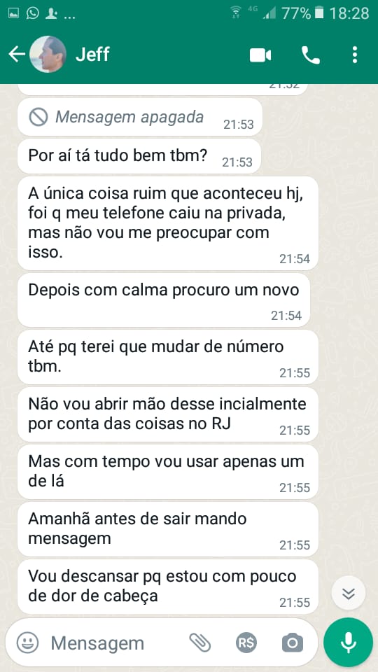 Maria das Dores acredita que desde o dia 24 de janeiro já não era mais Jefferson. O perfil do Whatsapp do ator enviou mensagens dizendo que ele iria para São Paulo trabalhar em uma empresa de marketing, e, logo depois, mandou uma foto de um santuário. Ela diz que, se realmente fosse o filho, ele teria mandado várias imagens mostrando os detalhes da viagem, como era de costume.