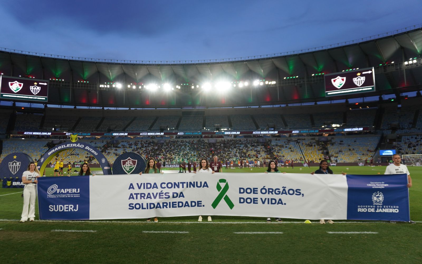 A FAPERJ Fundação de Apoio e Amparo à Pesquisa do Estado do Rio de Janeiro (Faperj) se uniu á Secretaria de Ciência e Tecnologia (SECTI) E A Suderj para “abraçar” a causa da doação de órgãos. Para trazer mais visibilidade ao tema, minutos antes da partida entre Fluminense e Atlético-MG, neste sábado (4), pela 27ª rodada do Campeonato Brasileiro, foi exibida no gramado uma faixa com os dizeres “A vida continua através da solidariedade. Doe órgãos, doe vida”.