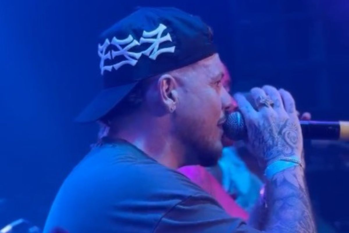 Ao lado da esposa, Thaís Vasconcelos, musa digital do Camarote Arpoador, Ferrugem participou da apresentação em um clima de resenha entre amigos, cantando, interagindo com os músicos e se aproximando do público, sem formalidades ou produção especial.