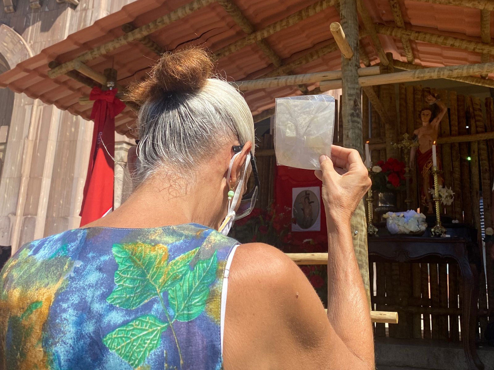 “Ele na minha vida é tudo, eu nem sei como agradecer. Tudo o que peço para ele eu consigo. Eu estou aqui para agradecer por mais um ano de vida. Minha sobrinha está com Covid, vim pedir por ela. Eu tenho fé em São Sebastião que ela ficarão curadas”.