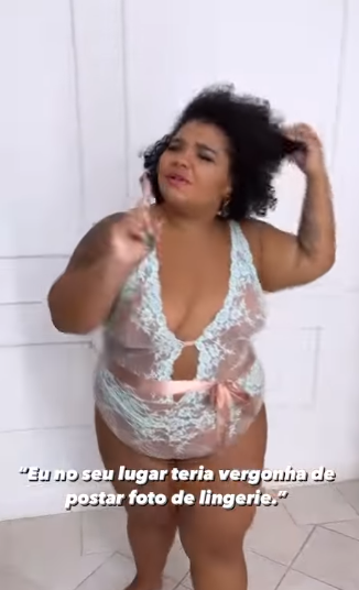 Flora apareceu no vídeo compartilhado usando apenas lingerie. Nas imagens, ela escreveu uma crítica que recebeu; um de seus seguidores questionou se ela não tinha “vergonha” de exibir seu corpo.