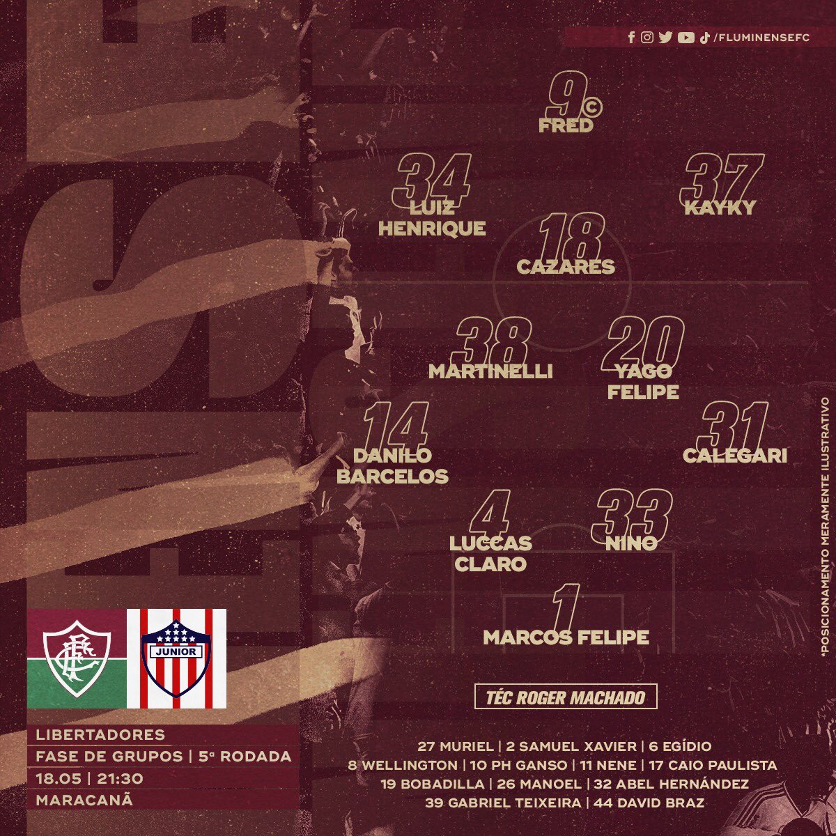Fluminense está escalado para pegar o Junior Barranquilla pela Libertadores