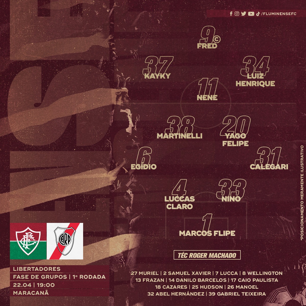 Fluminense está escalado para pegar o River Plate pela Libertadores