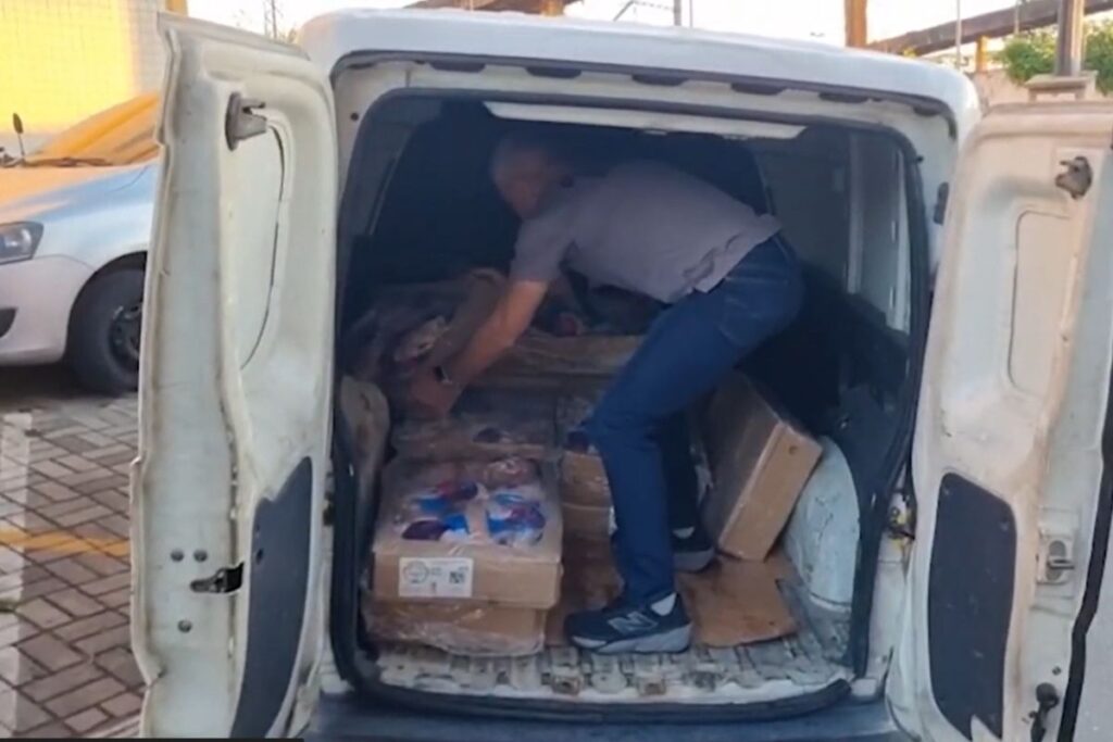 Os agentes abordaram o primeiro carro, adesivado com a logomarca de uma empresa de entregas, e encontraram 23 caixas de frango sem nota fiscal, totalizando 460 quilos. Os ocupantes confessaram que compraram o produto na Favela do Mandela, com o objetivo de revender em Duque de Caxias.
