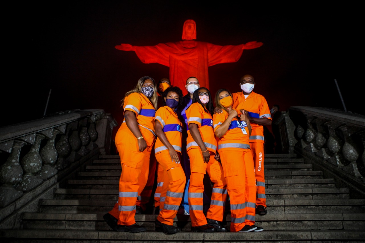 A estátua do Cristo Redentor recebeu uma iluminação especial na noite deste domingo (16), na cor laranja, em homenagem ao Dia do Gari. Reitor do Santuário Cristo Redentor, Padre Omar fez uma celebração na presença de poucos profissionais da Comlurb, devido às restrições impostas pela pandemia.