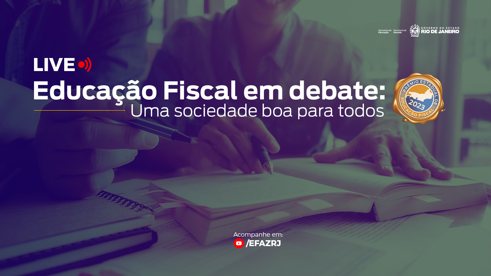 O Grupo Estadual de Educação Fiscal (Gefe-RJ) vai promover mais uma edição do Educação Fiscal em Debate, com o tema “Uma sociedade boa para todos”, no dia 3 de julho. O evento será realizado com o objetivo de auxiliar os alunos e professores para participação e desenvolvimento de projetos no Prêmio Estadual de Educação Fiscal. A discussão vai acontecer às 10h, por meio de uma transmissão ao vivo no canal do YouTube da Escola Fazendária (https://www.youtube.com/@EFAZRJ).