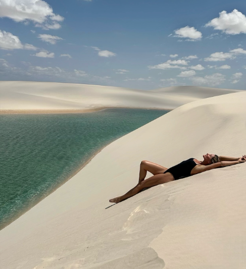 Na legenda, ela expressou sua admiração pelo destino paradisíaco: “Sempre sonhei em visitar os Lençóis. Que lindo que é o nosso Brasil!”, escreveu em português e inglês, acompanhando a mensagem com um emoji de coração vermelho.