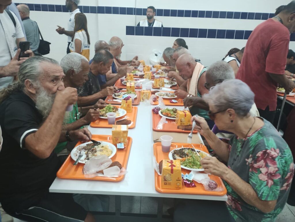 “Eu vi no jornal e no rádio, na televisão eu não vi não. E eu costumo frequentar o restaurante do povo de Bangu, de Campo Grande, já frequentei o da Cidade de Deus, que hoje não existe mais, mas estou muito satisfeita. A comida aqui é boa? Olha, podia ser todo dia a mesma coisa, mas não pode, né? Mas está muito bom. Nota 10.”, afirmou a aposentada.