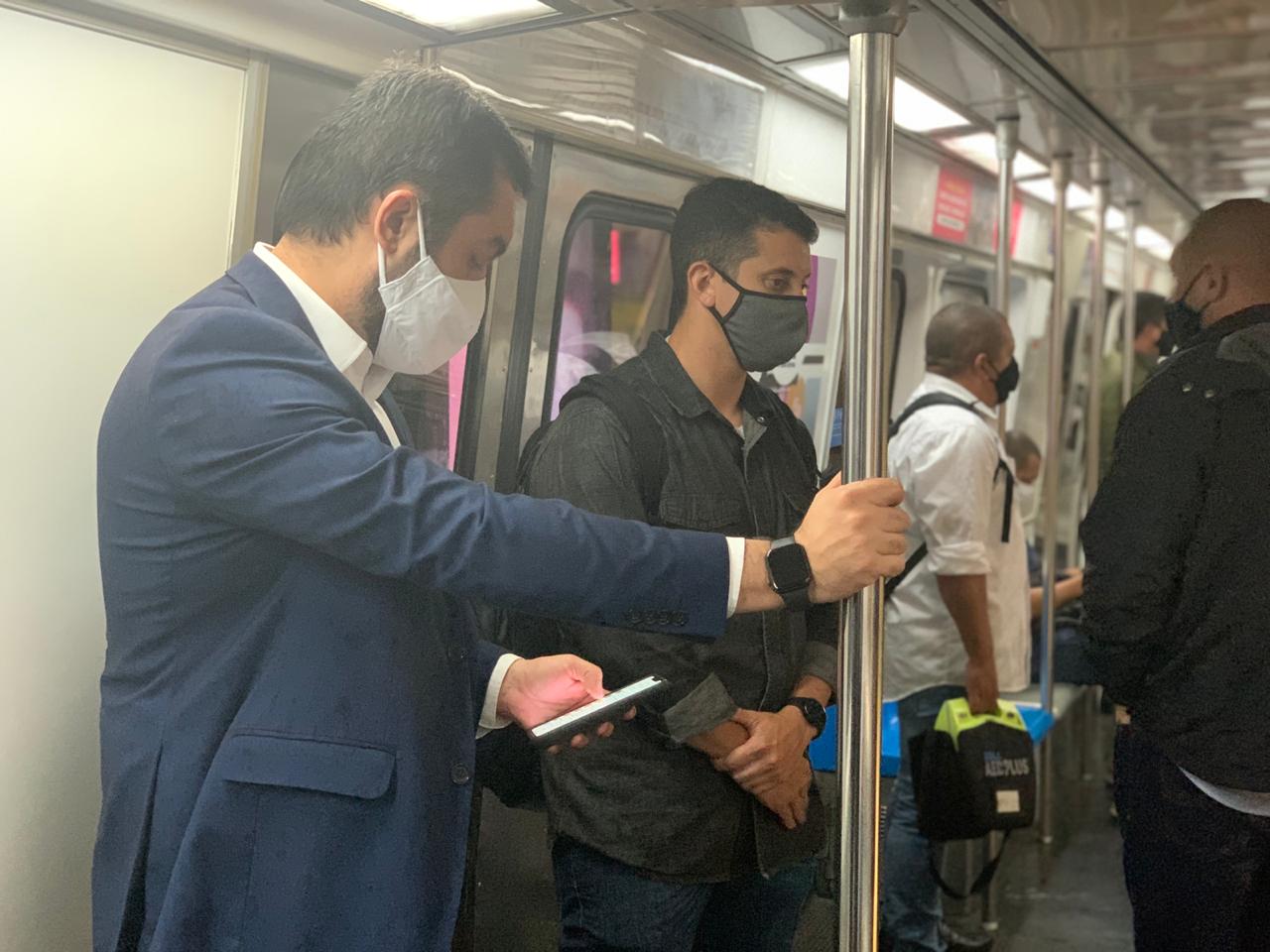 O governador do Rio de Janeiro em exercício , Cláudio Castro, foi trabalhar na manhã desta terça-feira (22), de metrô, em comemoração ao dia mundial sem carro. O chefe do executivo estadual, no lugar de Wilson Witzel, afastado por 180 dias, estava acompanhado apenas por um segurança.