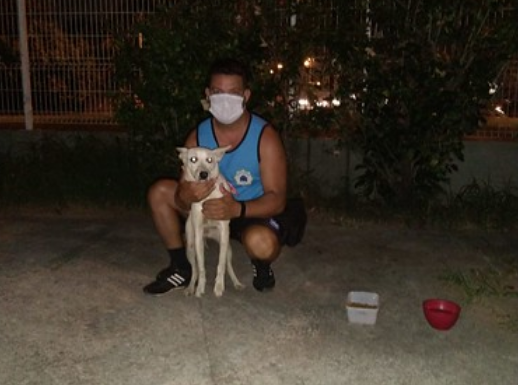 Os guardas municipais, então, solicitaram para o cidadão mostrar onde o animal se encontrava, para iniciar o resgate. Ao chegarem no local indicado, os agentes iniciaram o procedimento para captura e salvamento da cadela, com ajuda do banhista.