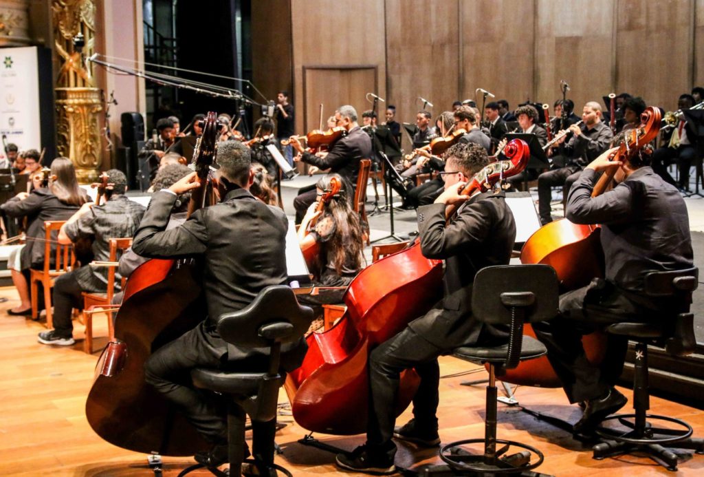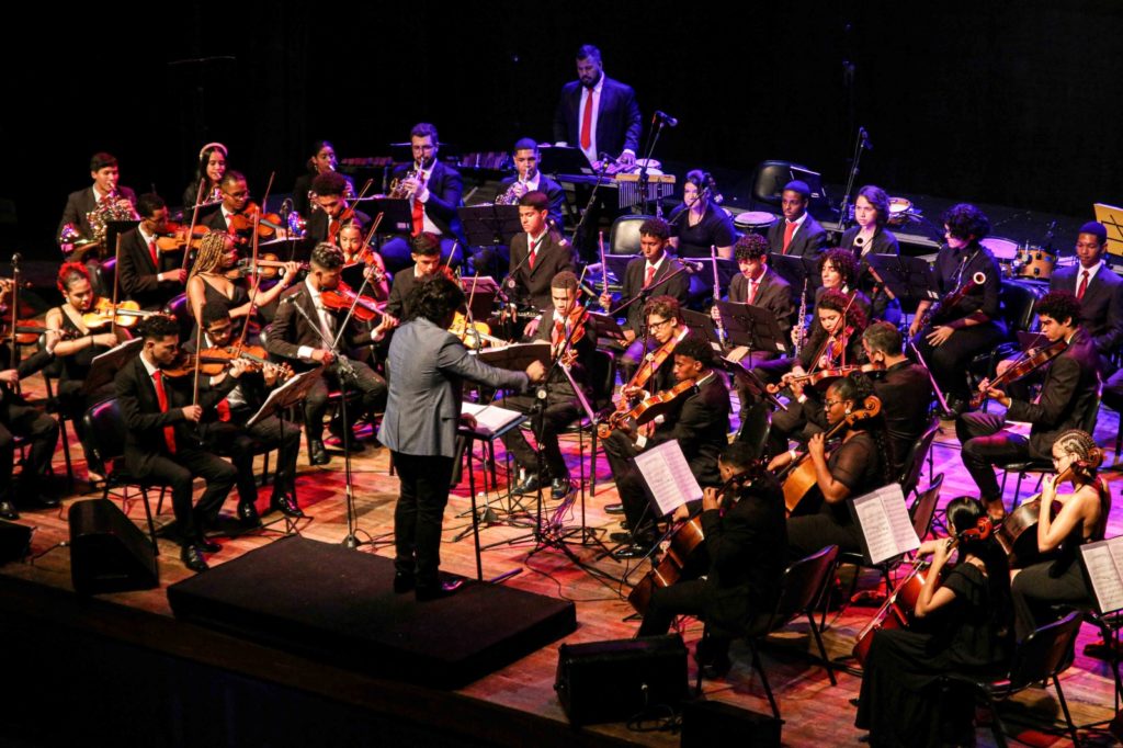 No palco, estarão 43 integrantes da Orquestra Sinfônica Juvenil Carioca, com idades entre 14 e 19 anos. São instrumentistas que recebem aulas de música de profissionais qualificados e vão tocar violino, viola, violoncelo, contrabaixo acústico, flauta transversal, clarineta, trompete, trombone, trompa, oboé, fagote e percussão neste concerto especial em referência ao Dia do Choro, na Sala Cecilia Meireles.