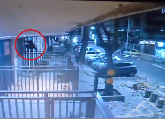 Imagens de câmeras de segurança mostram o bandido subindo no portão do edifício na Rua Antônio Vieira para escalar o imóvel.