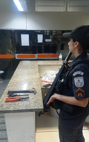 Durante a revista, foram encontrados cinco corrimões, duas janelas de vagões e ferramentas com o criminoso