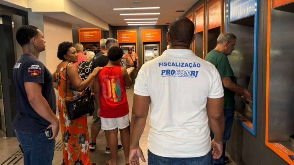 Na agência do Bradesco, os agentes encontraram vários equipamentos eletrônicos fora de funcionamento, mesmo com 12 caixas instalados na unidade. A situação gerou filas longas e aumentou o tempo de espera dos consumidores, incluindo idosos.