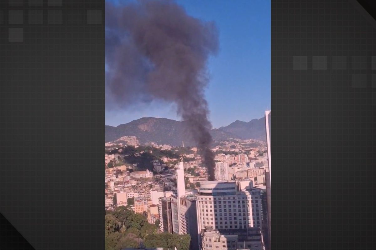 Incêndio atinge prédio no Centro do Rio. Foto: Tiê Leal/Rádio Tupi