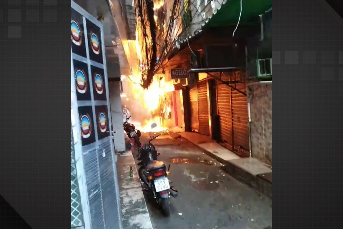 Incêndio de grandes proporções atinge prédio residencial na Rocinha