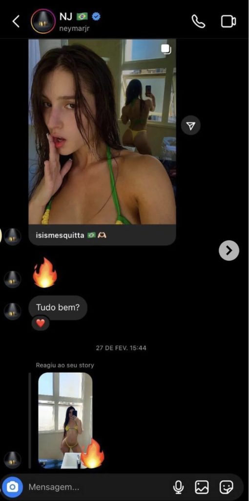 Mais uma influenciadora digital veio a público para exibir as investidas do jogador, que reagiu com emojis de uma das fotos dela. Ele também tentou puxar assunto. “Tudo Bem”, escreveu ele.