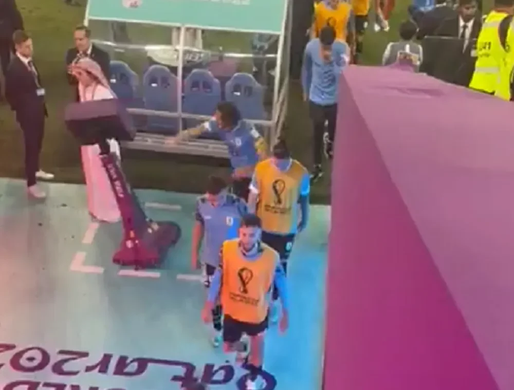 A seleção uruguaia, bicampeã mundial, acabou sendo eliminada na fase de grupos da Copa do Mundo. Apesar de vencer a partida contra Gana, com gols de Arrascaeta, a Celeste empatou em pontos com a Coreia do Sul e foi eliminada por conta do saldo de gols. Cavani, que esteve envolvido na reclamação da não marcação de um pênalti, na saída de campo, descontou a raiva na cabine do VAR.