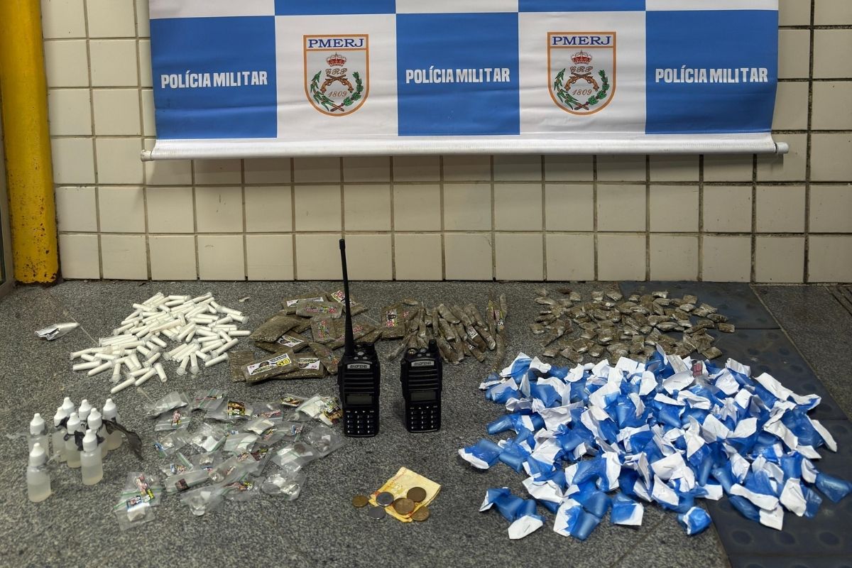 O suspeito já tinha anotação criminal por tráfico e foi pego com uma grande quantidade de entorpecentes. Na mochila do suspeito, foram apreendidos: