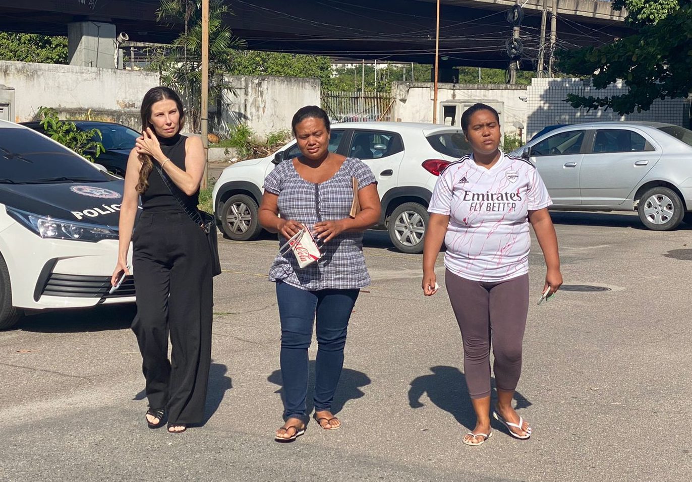 Mãe de Jonathan Ribeiro (no meio) chega ao IML para reconhecer corpo do filho – Foto: Tatiana Campbell/Super Rádio Tupi