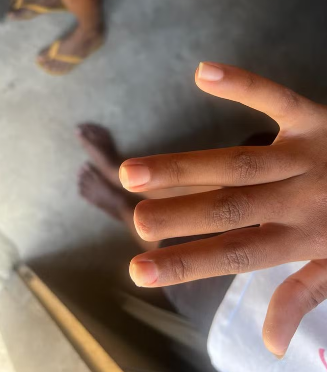 Uma das filhas, atualmente com 16 anos, teve parte do dedo amputado ao manusear uma máquina. A vítima conta que ficou com sequelas e dificuldade em segurar objetos. Após o acidente, a mãe passou a roçar o terreno com uma foice e as duas filhas, com facões.