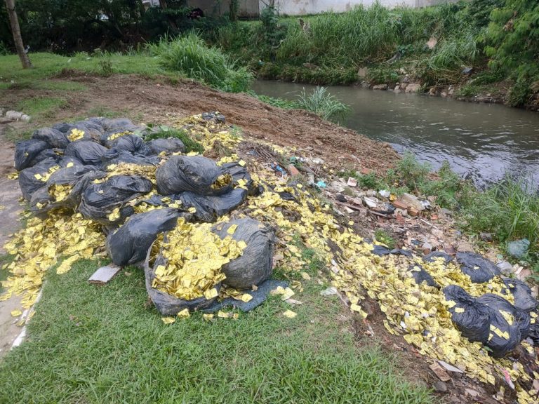 Após uma denúncia anônima, agentes da Guarda Ambiental Municipal foram à Avenida Kennedy, às margens do Rio Botas, e encontraram pelo menos 50 sacos de lixo com cerca de 500 cartelas em cada um deles, totalizando aproximadamente 25 mil unidades na última segunda-feira (10). Parte do material foi imediatamente recolhida pelos agentes e o restante retirado nesta terça-feira (11), pela Empresa de Limpeza Urbana.