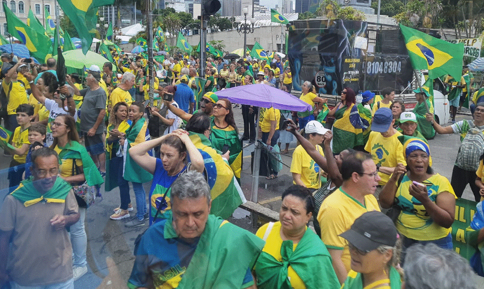 Em mais um dia de manifestação no entorno do Palácio Duque de Caxias, sede administrativa do Comando Militar do Leste, no Centro do Rio, apoiadores do presidente Jair Bolsonaro ocuparam a linha do VLT Carioca, causando impactos nas Linhas 2 e 3, que circulam com operação parcial.