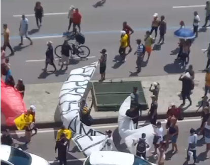 Às 11:40, um grupo começou a caminhar na Avenida Presidente Vargas, na altura do Sambódromo, sentido Praça da Bandeira. Alguns minutos depois, eles se encontraram na altura do prédio da Prefeitura, interditando a pista central no sentido Candelária.