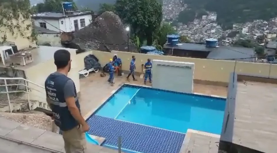 Um imóvel construído na comunidade da Rocinha, na Zona Sul do Rio, é demolido em uma operação conjunta do Ministério Público e da secretaria municipal de Ordem Pública. O imóvel é avaliado em R$ 2 milhões.