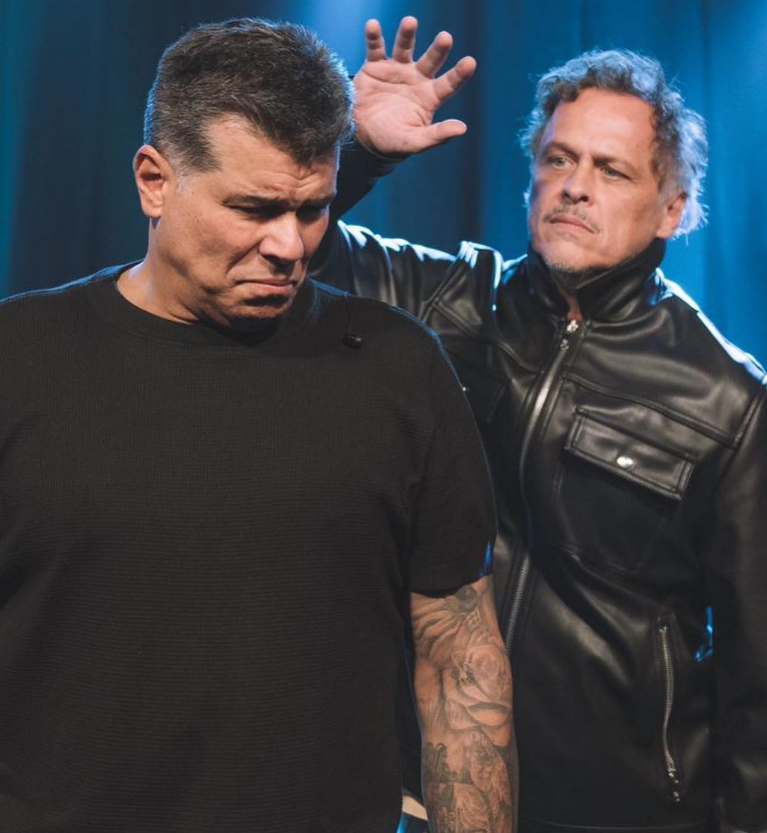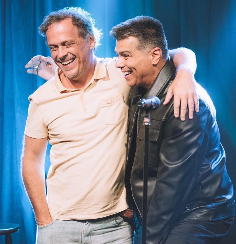 O ator e cantor Maurício Mattar, de 58 anos, e o ator Guilherme Fontes, de 56, se reencontraram, nesta quinta-feira (23), durante um show de Mattar, e reviveram os dois personagens que interpretaram na novela “A Viagem”, em 1994.