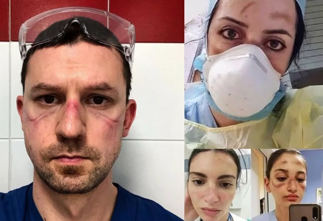 Profissionais da área de saúde estão usando as redes sociais para mostrar como ficam seus rostos devido aos acessórios de proteção.