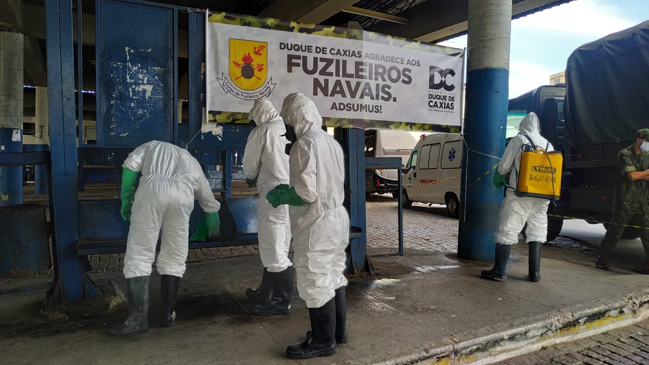 Militares da Marinha, em parceria com a Prefeitura de Duque de Caxias, realizaram a desinfecção do Terminal Rodoviário Plínio Casado, no centro do município. Pelo local, circulam diariamente milhares de pessoas a caminho de casa ou do trabalho.