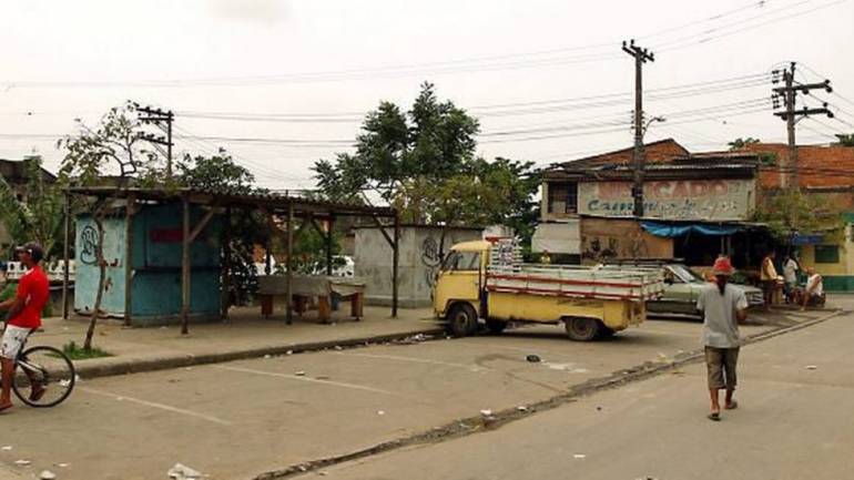 Uma guarnição da PM está posicionada desde as primeiras horas do dia na entrada da comunidade Palmeirinha