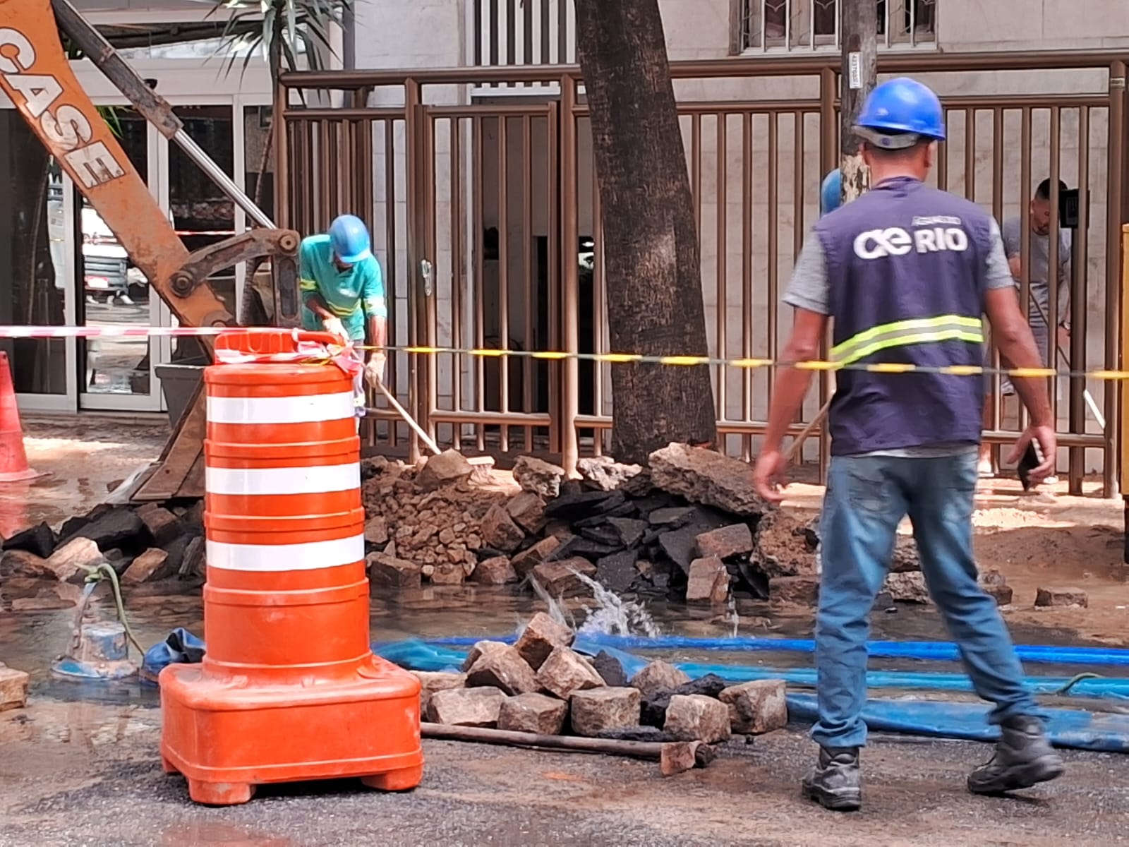 Técnicos da concessionária Águas do Rio trabalham no local para conter o vazamento. Por conta do incidente, o fornecimento de água foi interrompido para os bairros do Flamengo, Catete e parte de Laranjeiras. Não há informações sobre o que teria provocado o incidente. Agentes da prefeitura do Rio também estão no local para orientar os motoristas.